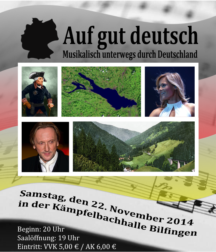 Unter dem Motto Auf gut Deutsch haben unsere Dirigenten auch in diesem Jahr ein interessantes und unterhaltsames Programm zusammengestellt. Wir laden Sie schon heute herzlich zum Besuch unseres Herbstkonzerts ein.