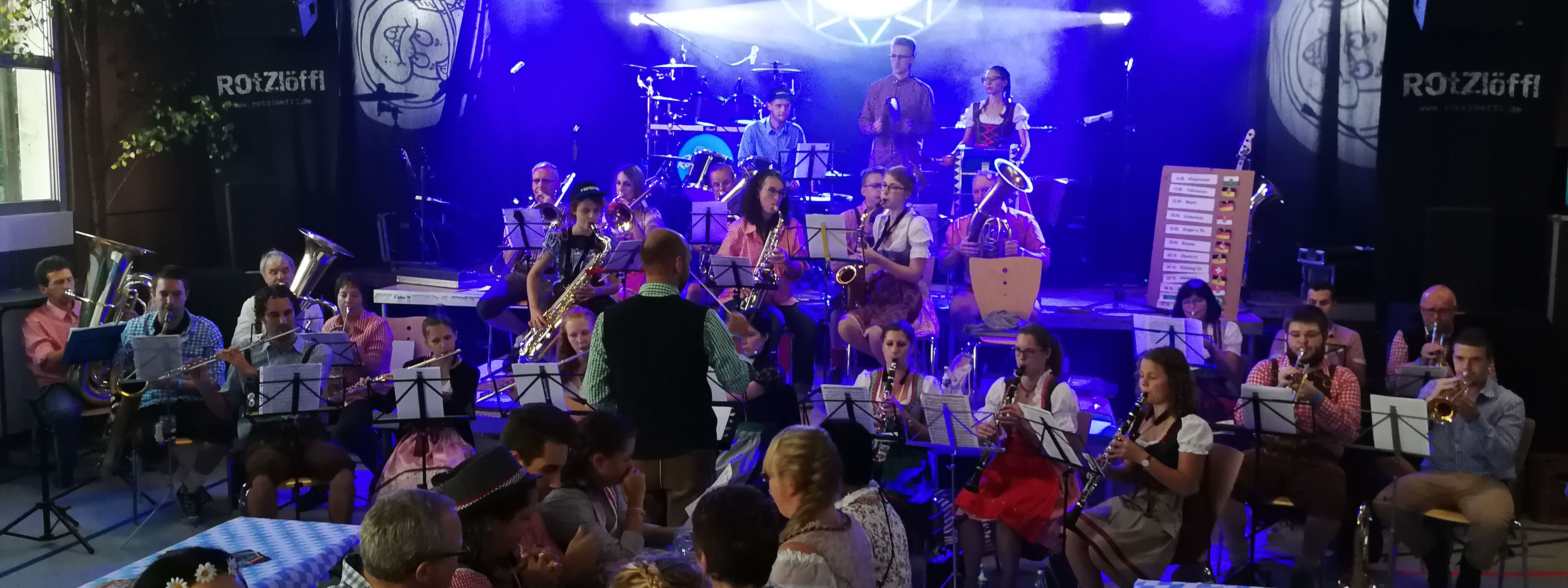 Am Samstag, den 15.09.2018 hieß es „O´zapft is“ in der Gemmingenhalle zu Tiefenbronn. Zum fünften Mal öffnete das Tiefenbronner Oktoberfest seine Pforten und der Musikverein war mit dabei. Das große Blasorchester unter der Leitung von Alexander Meixner hatte die ehrenvolle Aufgabe dem Publikum als Vorband des Abends ordentlich einzuheizen. Neben bekannten Polkas wurden auch einige Festzelt-Hits zum Besten gegeben. Nach eineinhalb Stunden Live-Programm und viel Applaus verließ das Orchester schließlich die Bühne und machte Platz für den Haupt-Act des Abends, die „Rotzlöffl“.