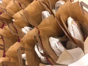 Viele fleißige Hände packten mit an und so wurden die Tüten bestückt und an die hungrigen Besteller ausgeliefert.