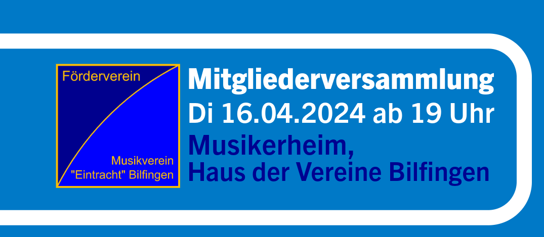 Wir laden alle Mitglieder herzlich zu unserer Mitgliederversammlung am Dienstag, den 16. April 2024 um 19 Uhr im Musikerheim im Haus der Vereine in Bilfingen ein.